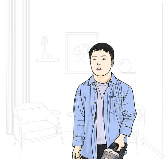 평소 청소를 좋아하고(특별히 청소기를 좋아하는),